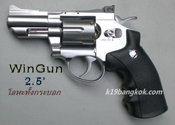 สินค้า : WinGun ปืนลูกโม่สีดำ 2.5นิ้ว [แถมแก๊ส5หลอด] [WG708B]รายละเอียด : ปืนรีวอลเวอร์ลำกล้อง2.5นิ้วสีดำด้านของWinGunไต้หวัน เป็นปืนบีบีชนิดลูกโม่ที่ผลิตจากโลหะทั้งกระบอก ระบบปฎิบัติการเหมือนจริง จะยิงแบบลากไกต่อเนื่องหรือง้างนกที่ละนัดก็ได้ ใช้แก๊สCo2ชนิดหลอด ความเร็วกระส ราคาทั่วไป : 0.00ราคาพิเศษ : 0.00